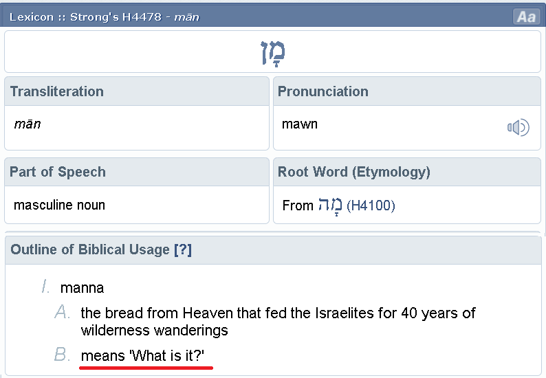 The word “manna” in Hebrew(mān מָן) means “What is it?”